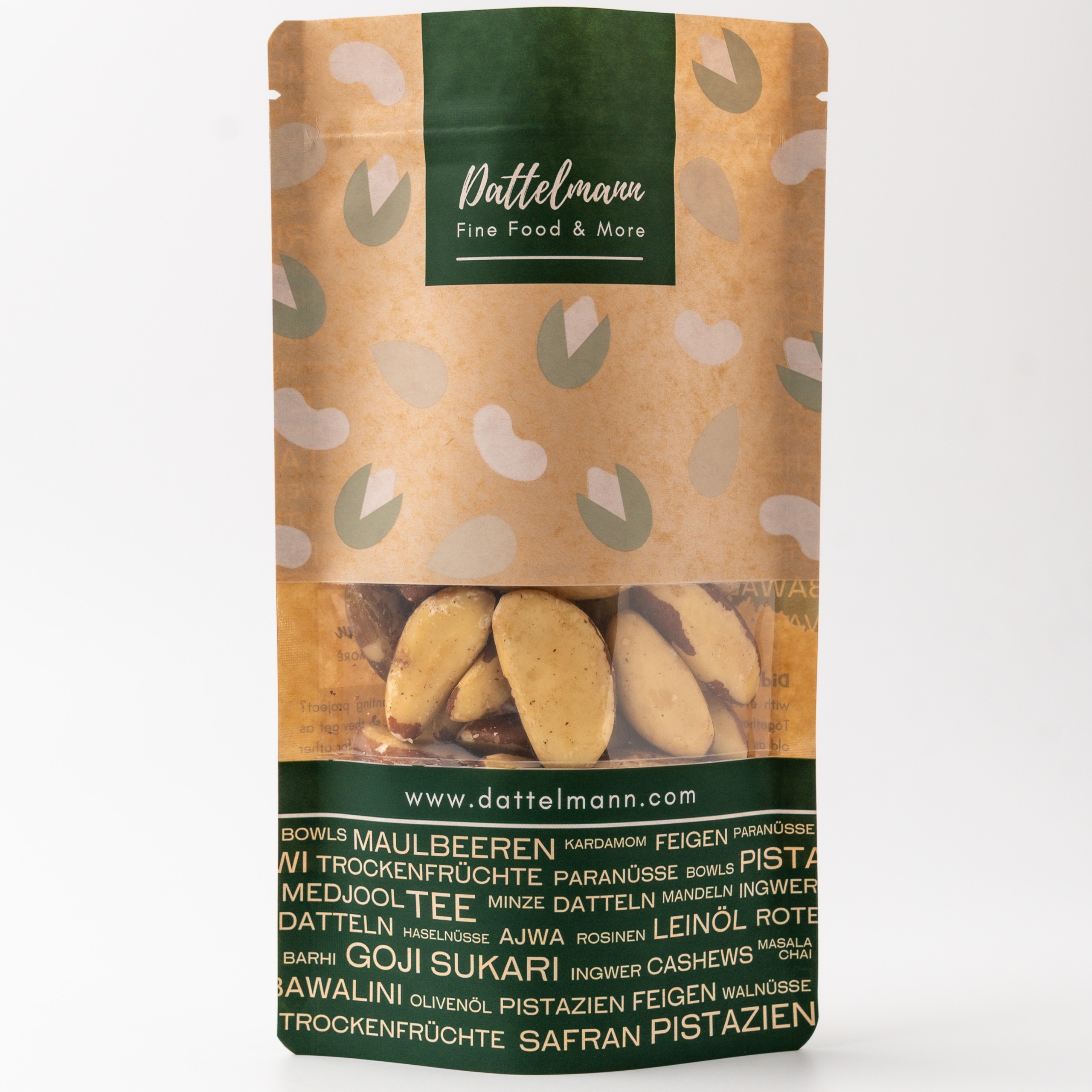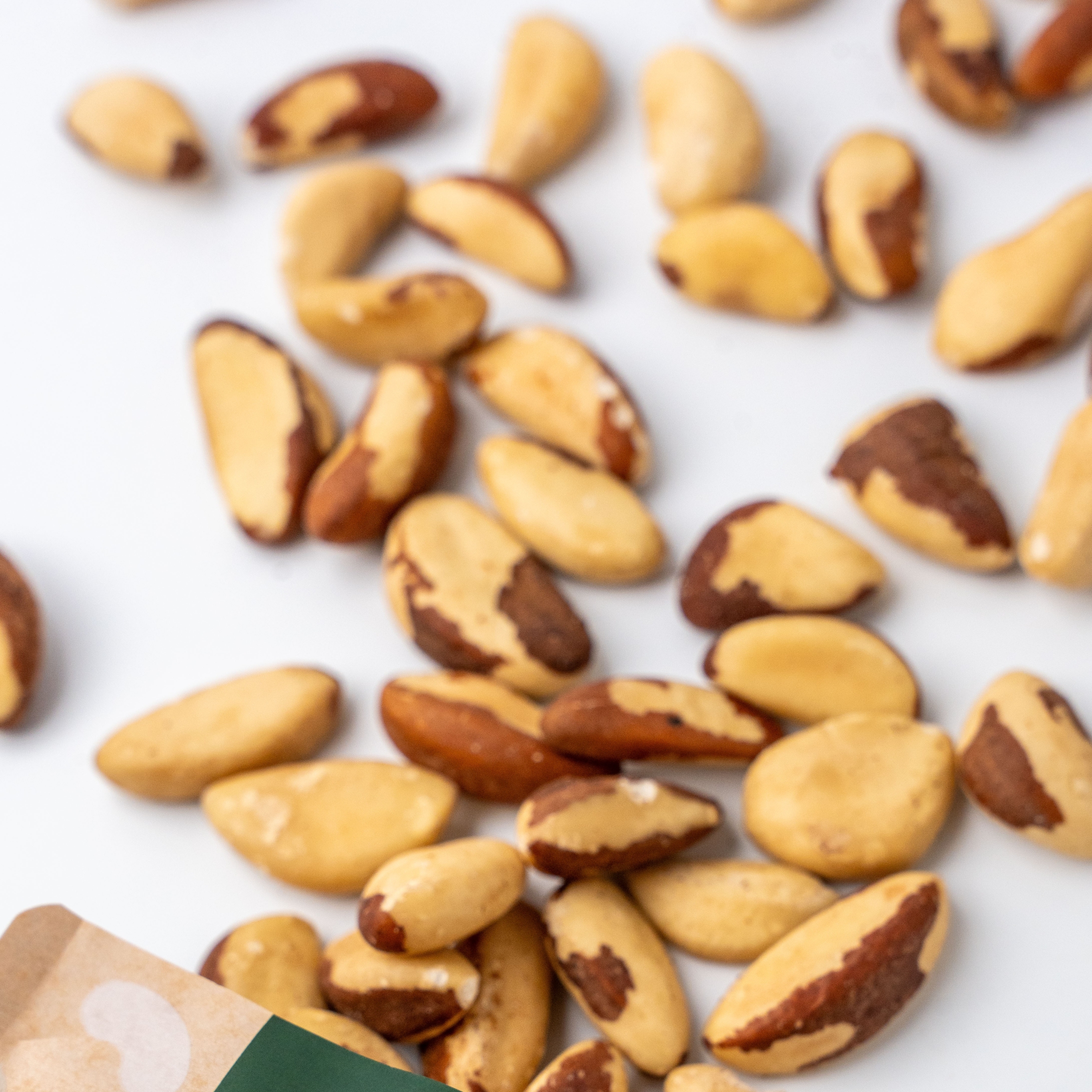 Brazil nuts are the seeds of the Bertholletia excelsa tree. These trees rely on untouched ecosystems to thrive, making Brazil nuts a true gift from nature. Their large size, rich flavour, and crunchy texture make them unique.