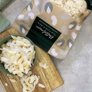 | 🌴 100% Organic: Made from premium, certified organic coconuts from Sri Lanka.| 🥥 Lightly Toasted & Crunchy: Naturally toasted to enhance flavour and provide a satisfying crunch.| 💚 Vegan & Gluten-Free: Suitable for vegan and gluten-free diets with no added sugars or preservatives.| 💪 Rich in Nutrients: Packed with fibre, healthy fats, iron, and potassium for a healthy snack.| 🌍 Sustainably Sourced: Ethically produced through fair-trade practices, supporting small-scale Sri Lankan farmers.| 📦 Freshness Guaranteed: Sealed for freshness and delivered quickly for maximum flavour and crunch.|
