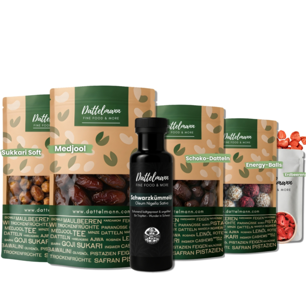 Kruopščiai atrinktas prabangus rinkinys, kuriame sujungtos aukščiausios kokybės datulės, natūralūs energijos užkandžiai, supermaistas ir sveikatingumo reikmenys – skirta šventinėms progoms ir prasmingoms dovanoms ištisus metus.