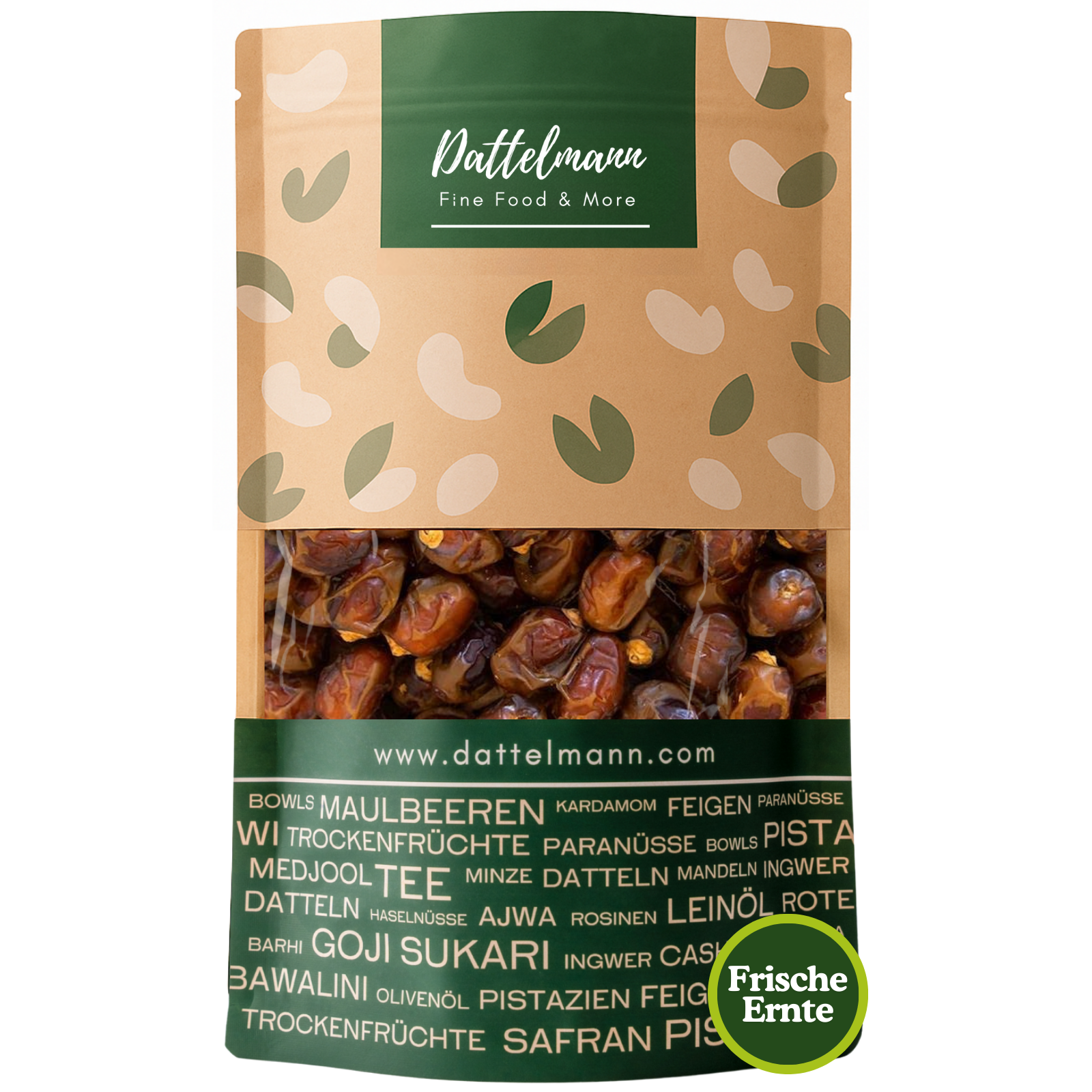 Vidutinio minkštumo datules, Segaj, Medjool, galima valgyti šaltas iš šaldytuvo arba kambario temperatūros.