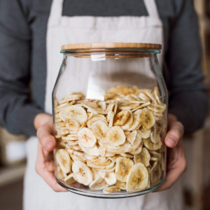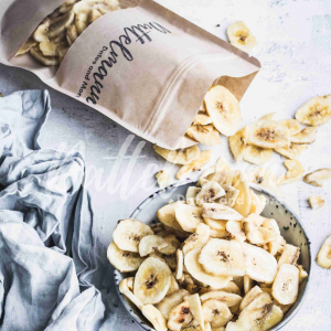 | Pagaminta iš 63 % ekologiškų bananų, gautų iš Filipinų| Paruošta gryname kokosų aliejuje, be pridėtinio cukraus| Turtinga būtinų vitaminų ir mineralų, įskaitant kalį ir vitaminą B6| Puikus skaidulų šaltinis, skatinantis virškinimą| Universalus užkandis: mėgautis vieni arba pridėti prie dribsnių, jogurto ar kepinių receptų|