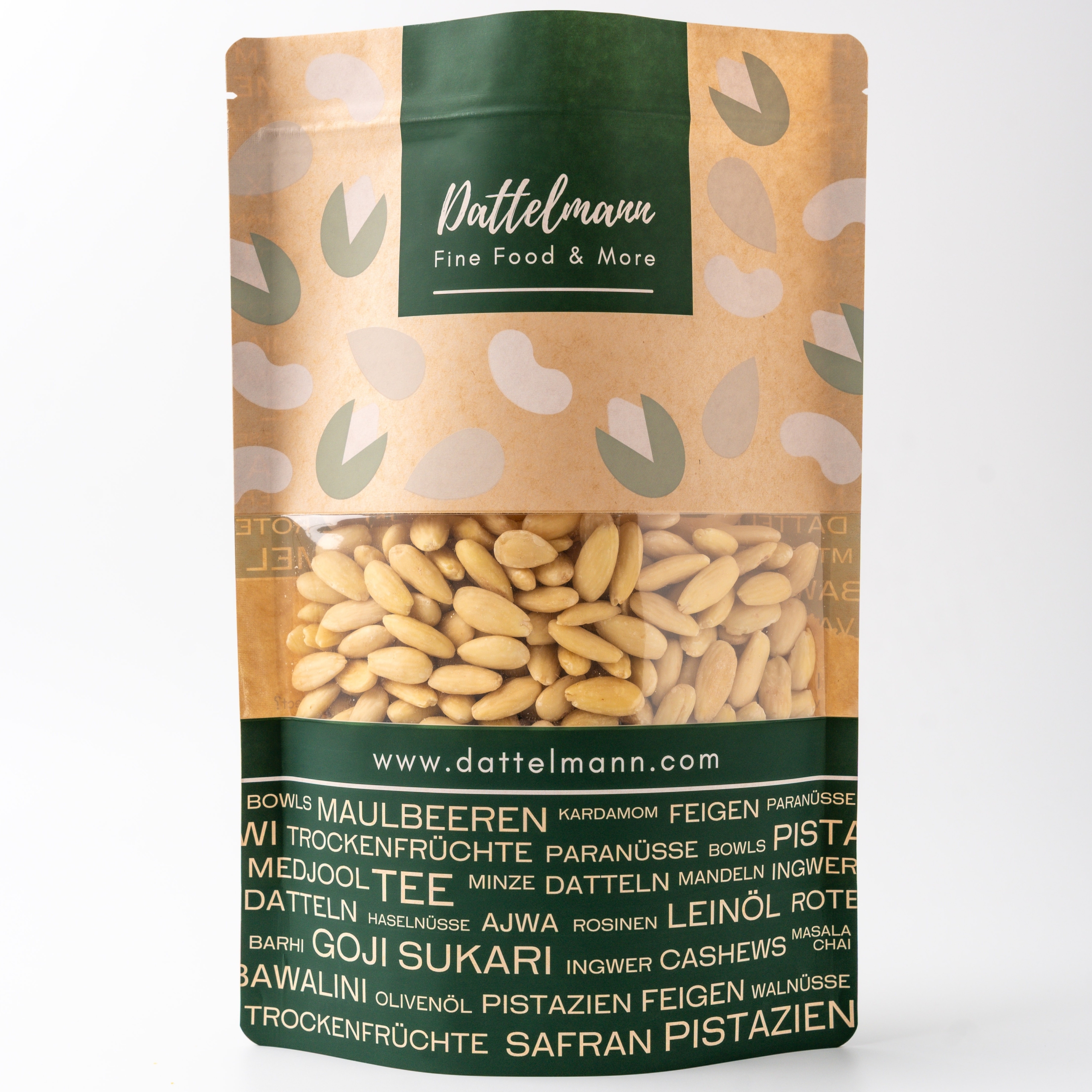 | |🌿 100% Natūralūs Kalifornijos Migdolai (Carmel Supreme, nepastrizuoti)|| |💪 Daug Baltymų (21,2 g/100 g) & Skaidulų (12,5 g/100 g)|| |❤️ Vitamino E, Magnio & Sveikųjų Riebalų šaltinis|| |🌱 Tvariai auginti Kalifornijoje – be GMO & nepastrizuoti|| |🥗 Puikiai tinka užkandžiams, kepiniams, kokteiliams & dubenėliams|| |✅ Premium kokybė, šviežiai supakuoti Datules Vokietijoje||